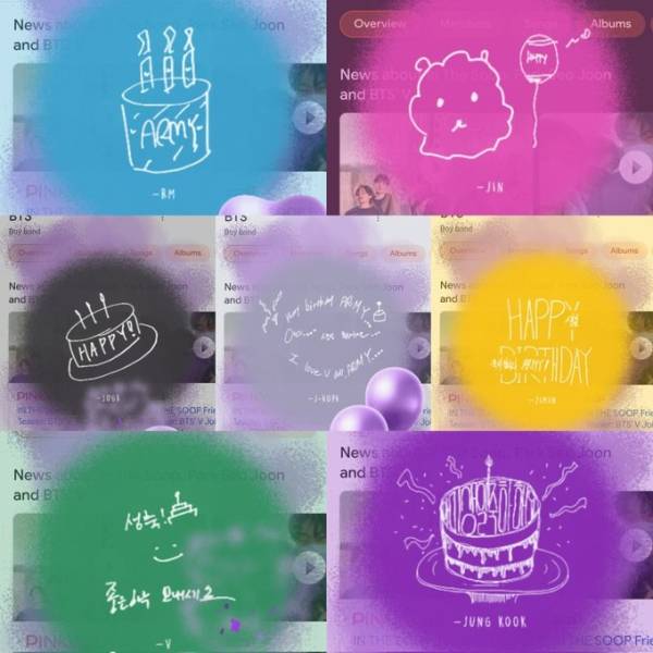 Selain pesan suara pribadi, setiap member BTS menggambar doodle mereka sendiri untuk ulang tahun ARMY. (*)
